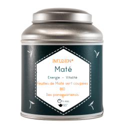Le maté provient Amérique du Sud et est bu traditionnellement par les Amérindiens. Il peut être consommé chaud ou froid. Il a un goût fort et amer. Il s'associe avec notamment des fruits, des épices ou des plantes. Il contient naturellement de la caféine. Il peut être consommé à tout moment de la journée (sauf le soir). Il est à la fois désaltérant et stimulant. Il aidera à lutter contre la fatigue mentale et physique.