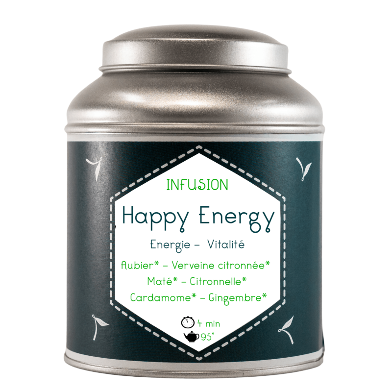 Ingrédients : Aubier*-Verveine citronnée* (20%) - Maté* (15%) - Citronnelle* - Gingembre* - Cardamome*