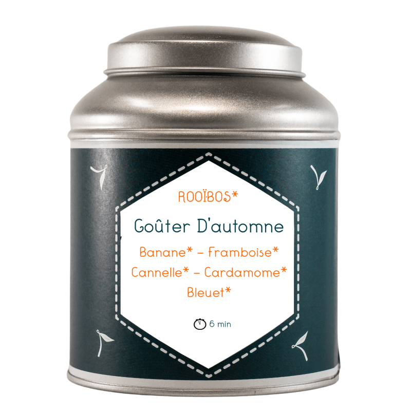 Rooïbos (AOP Afrique du sud)* - Banane* (30%) - Framboise* (15%) - Cannelle* - Cardamome* - Bleuet*