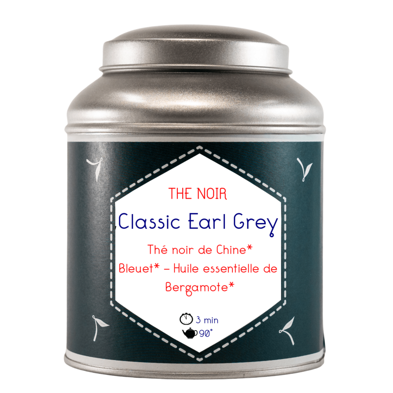 Ingrédients : Thé noir de Chine* - Bleuet* - huile essentielle de Bergamote* BIO